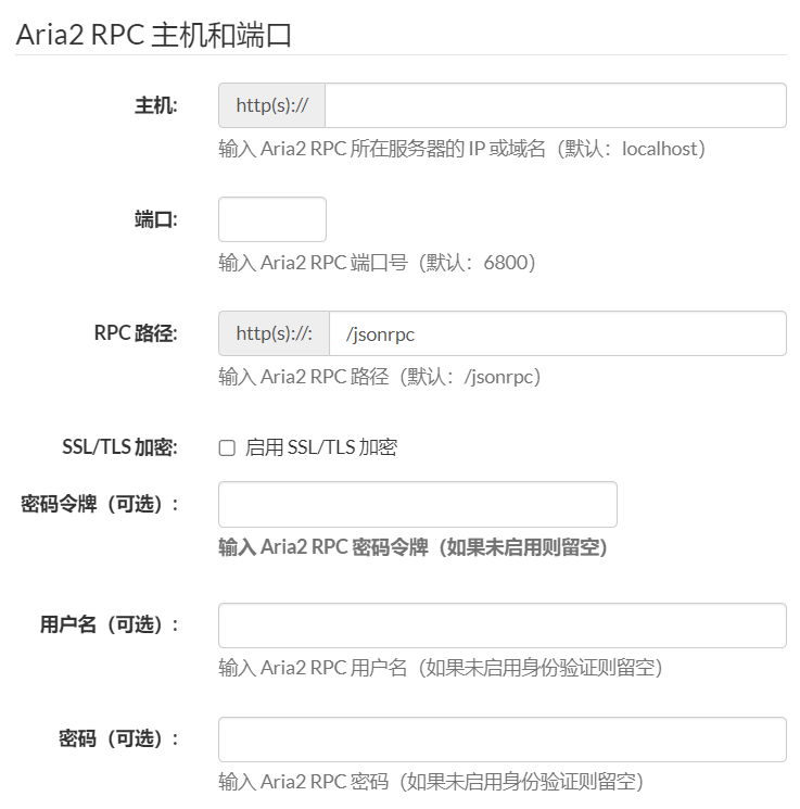 主机设置为你的公网IP或者域名,端口设置为你的内网穿透之后的端口,勾选SSL/TLS加密,如果你启动Aria2服务时设置了密码,则在密码令牌中输入你设置的密码.这样,Aria2 WebUI就可以加密连接到服务器了.