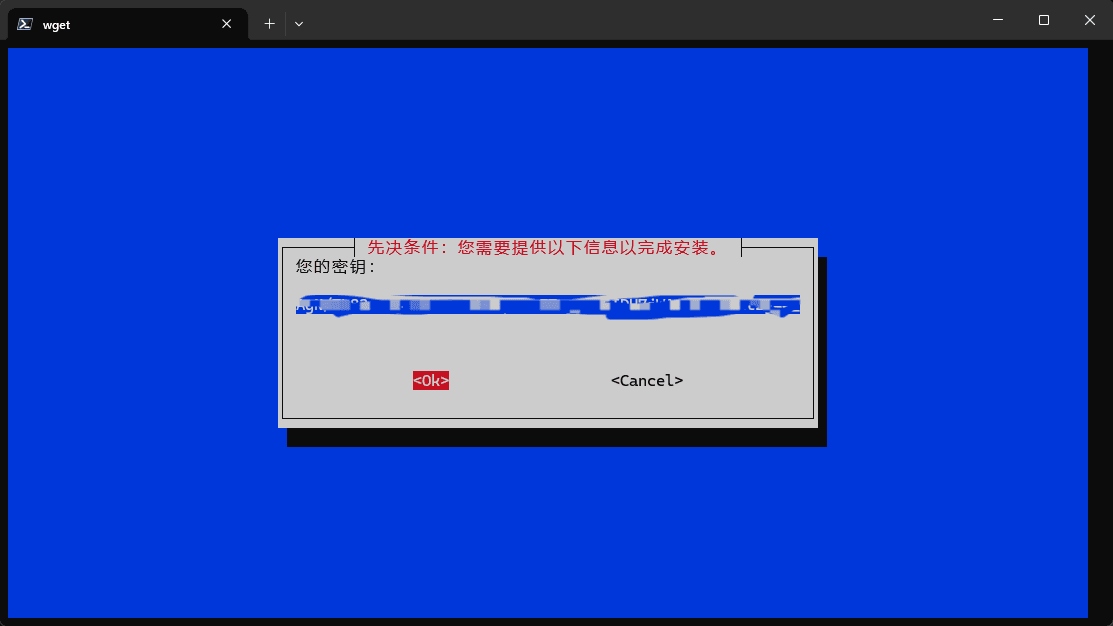根据提示,输入密钥进行下一步。