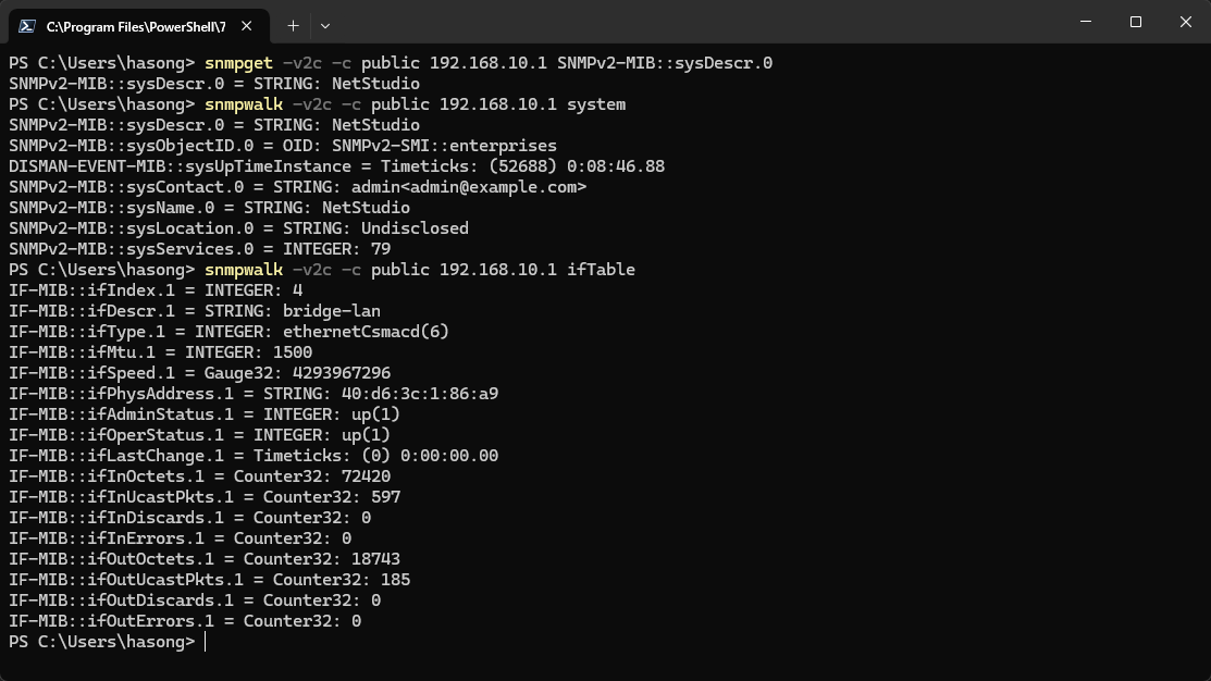 | snmpwalk -v2c -c public 192.168.1.1 ifTable