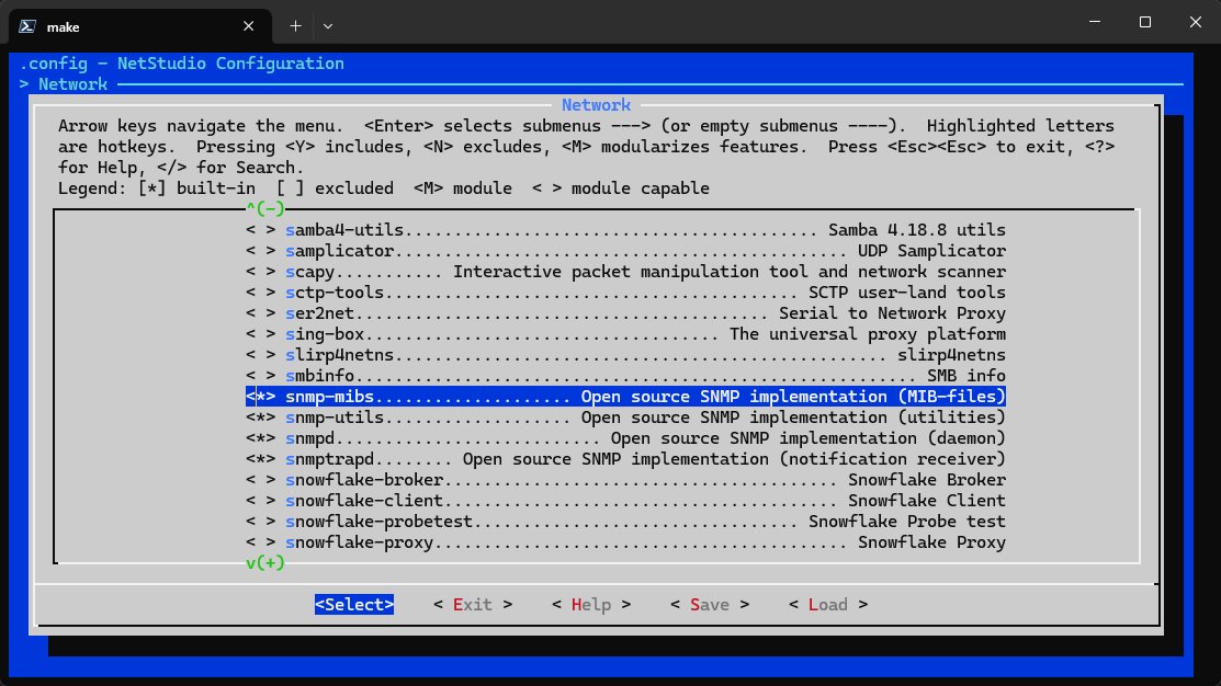 在make menuconfig中选择Network –> mini_snmpd,进行编译