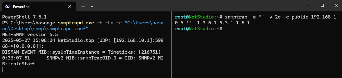 | snmptrapd.exe -f -Lo -c "C:\Users\hasong\Desktop\snmp\snmptrapd.conf"